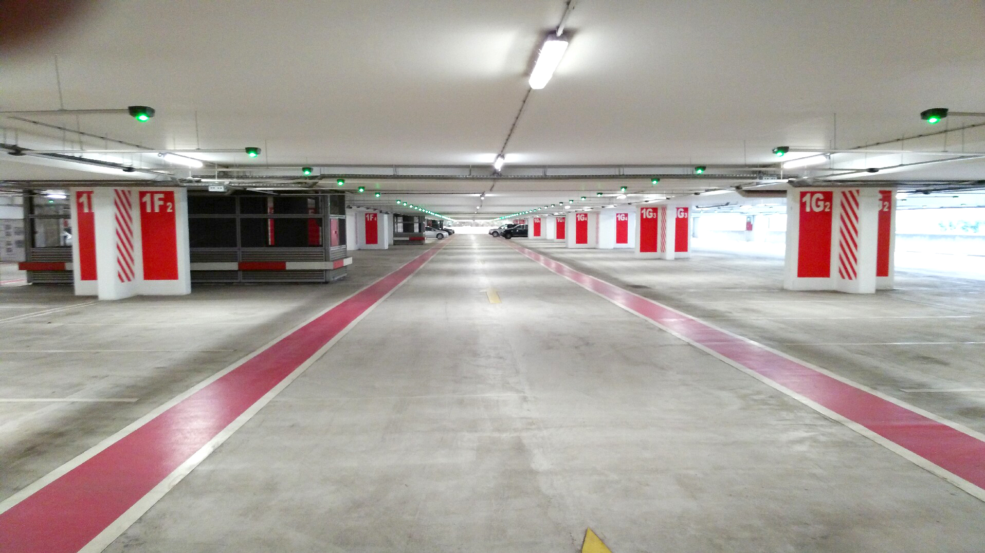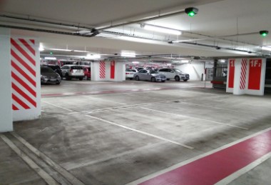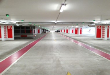 The parking lot of 272 m length and 150 m width consists of two blocks each has 4 floors and a single block of 3 floors.