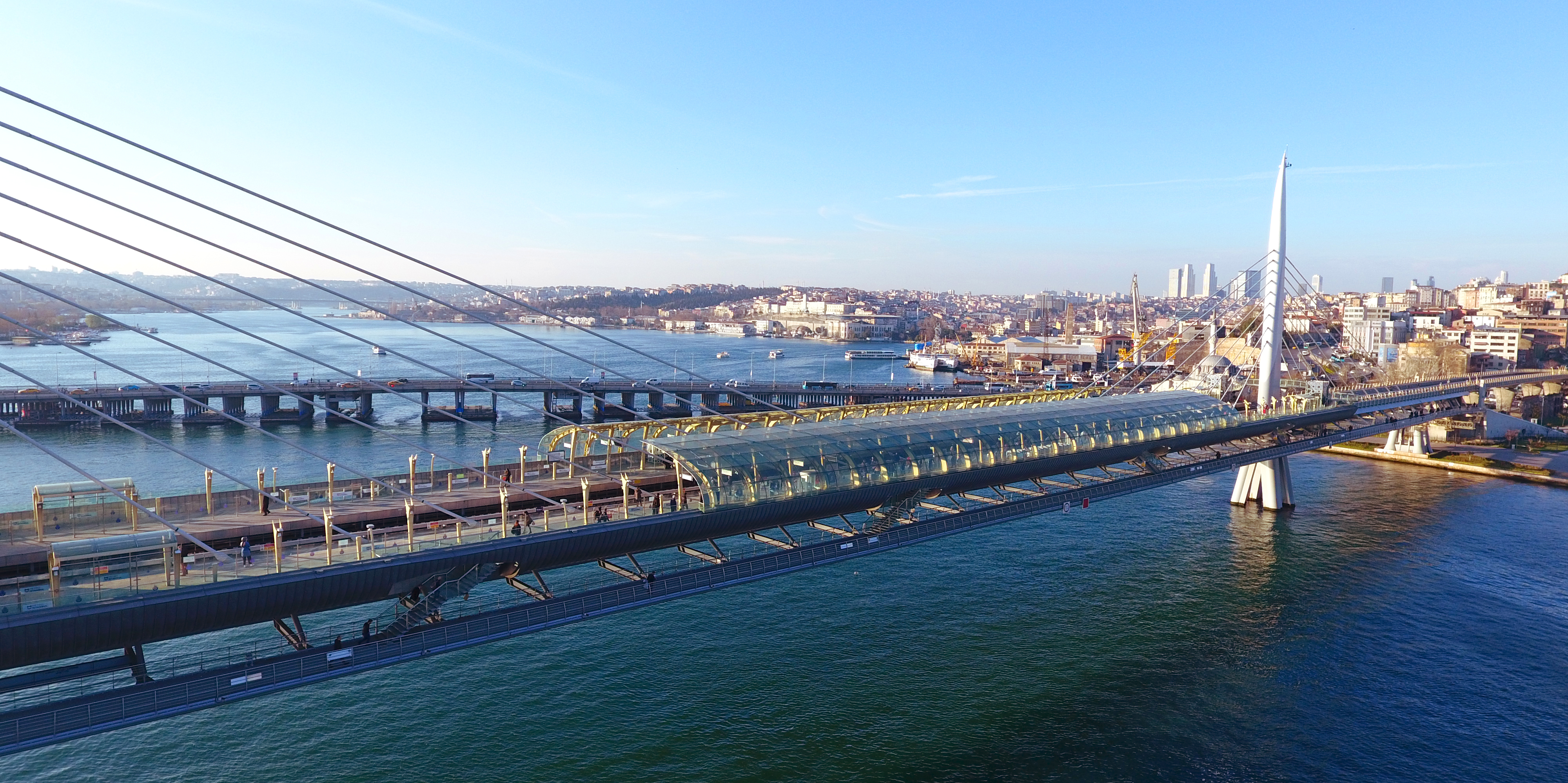 Haliç Metro Crossing Bridge consists of 936 m bridge construction involving 387 meters