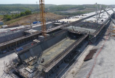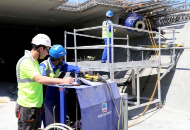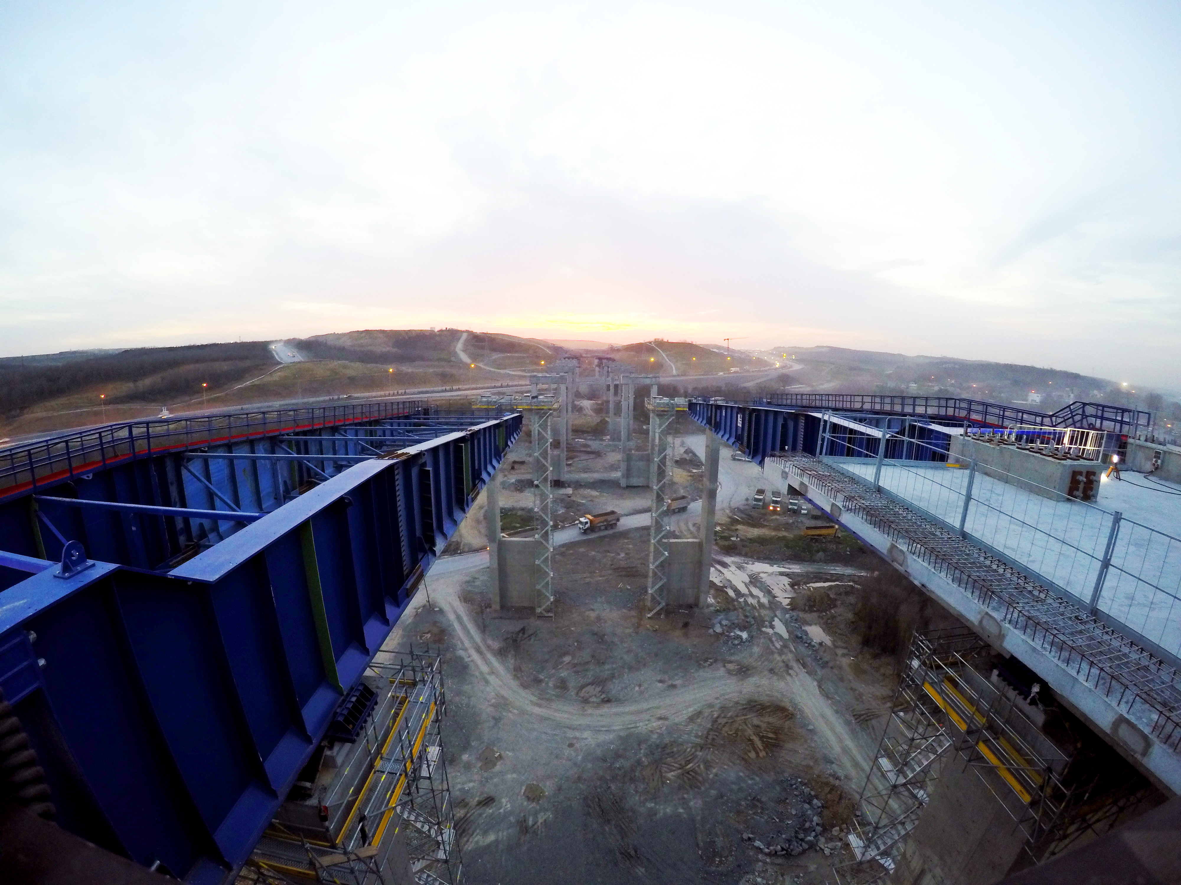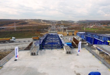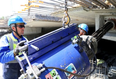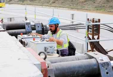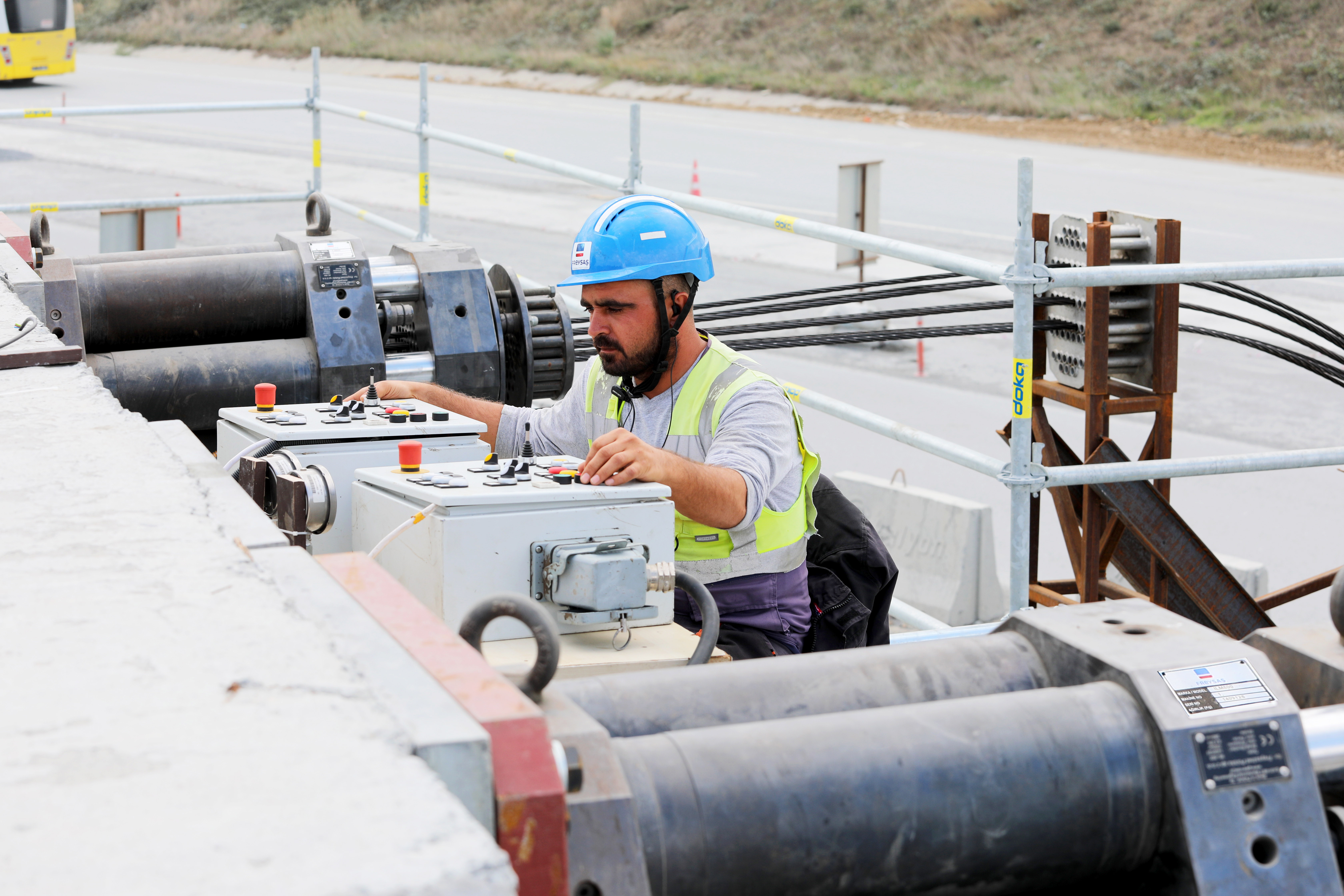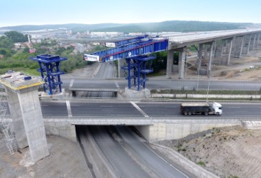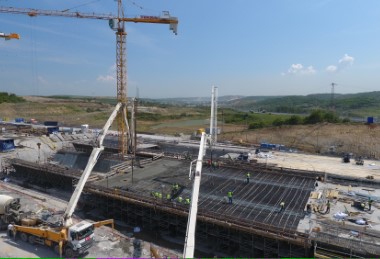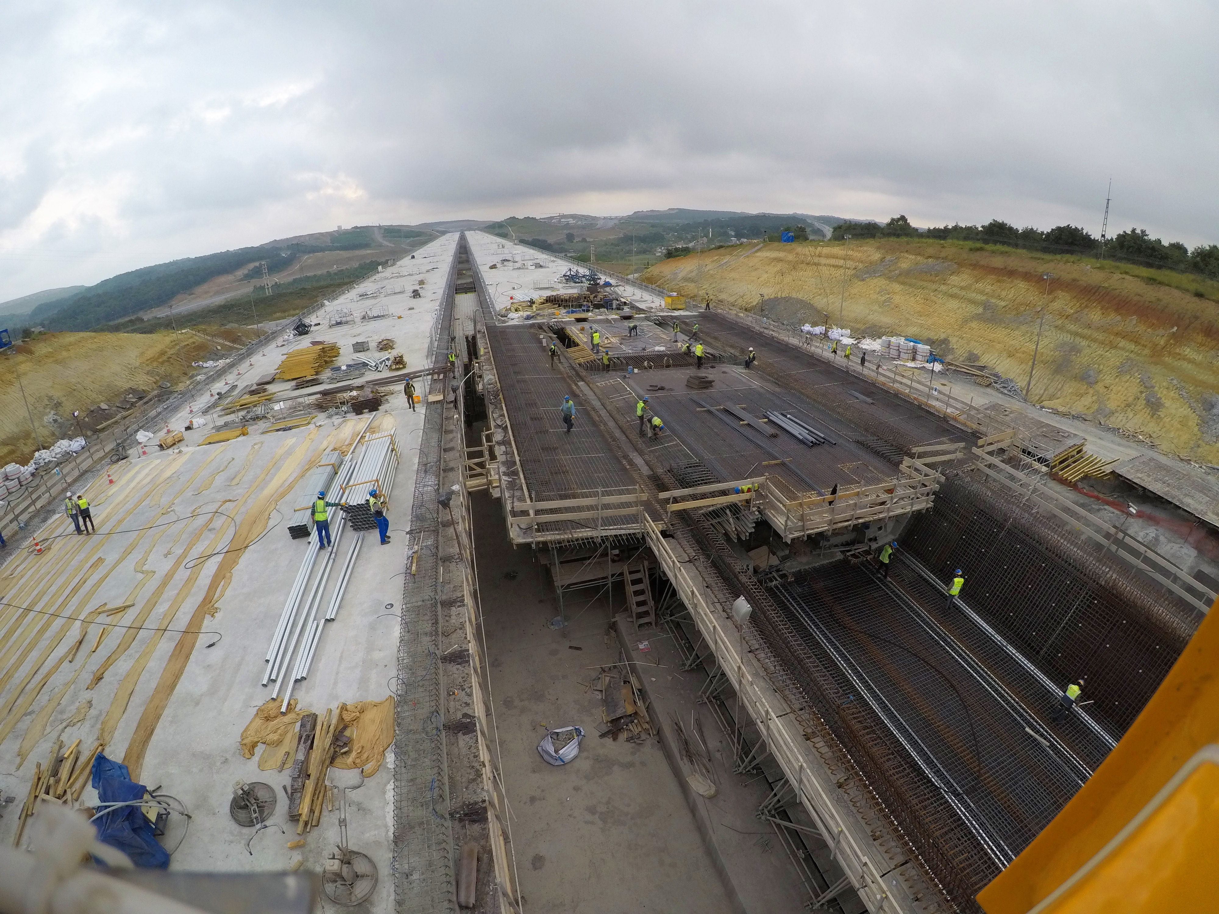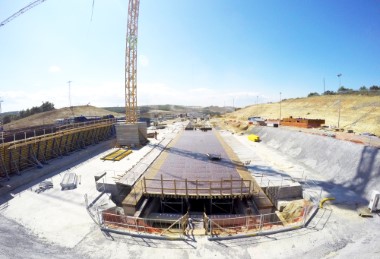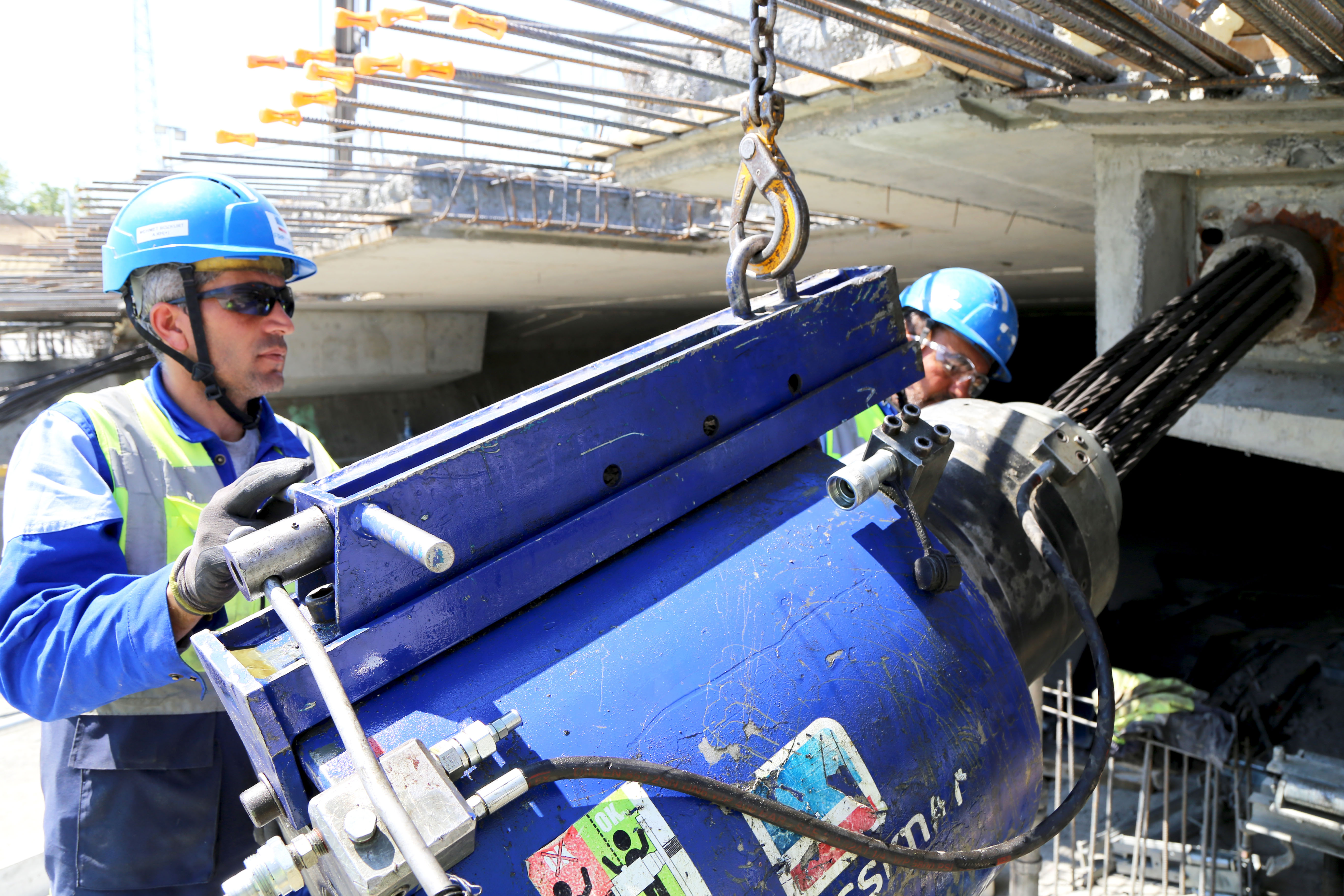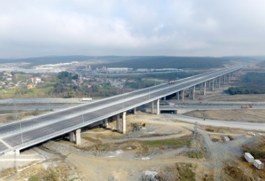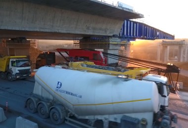İhsaniye Viaduct. Construction of reinforced concrete abutment and deck. Post-tensioning works of the