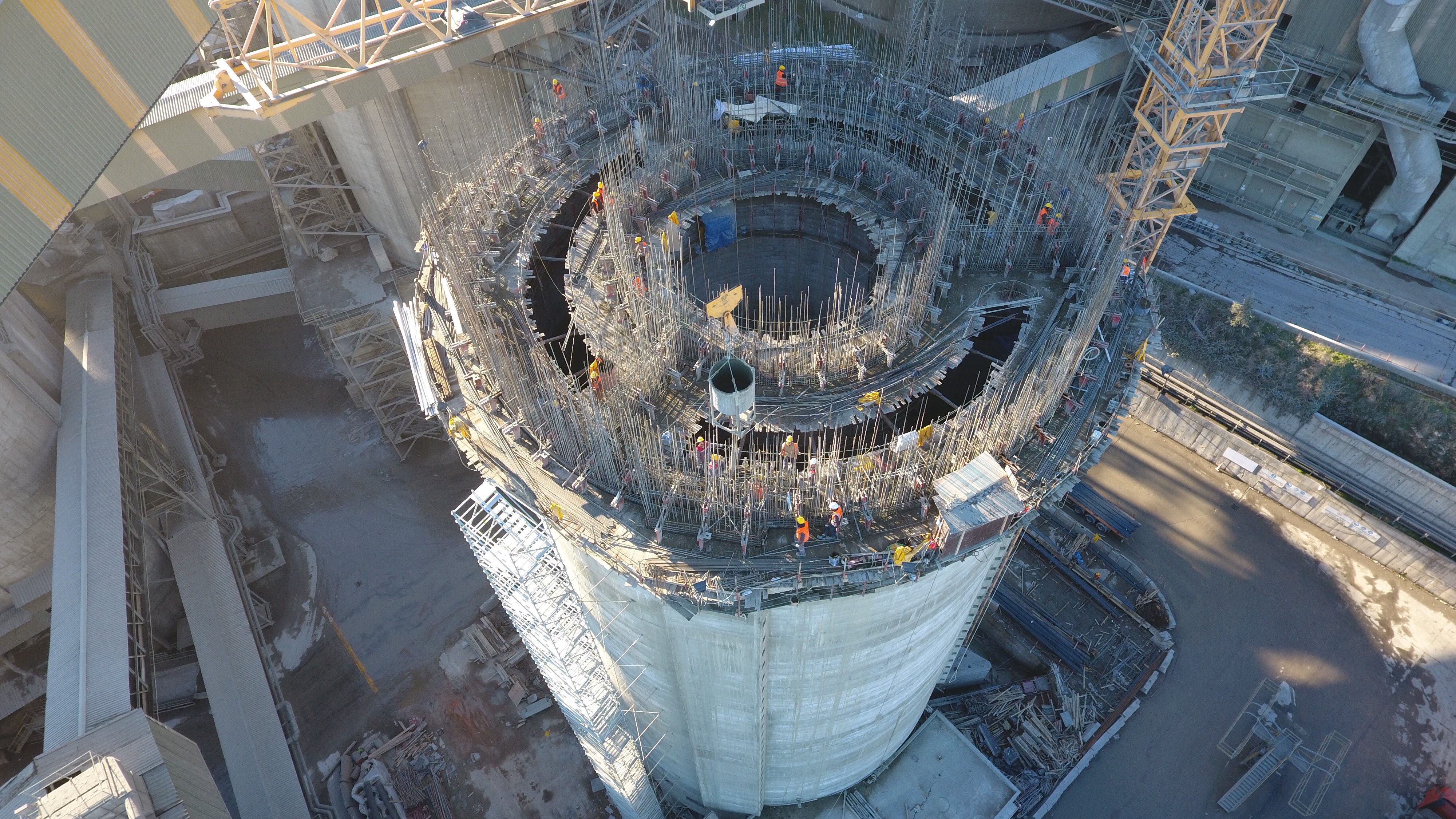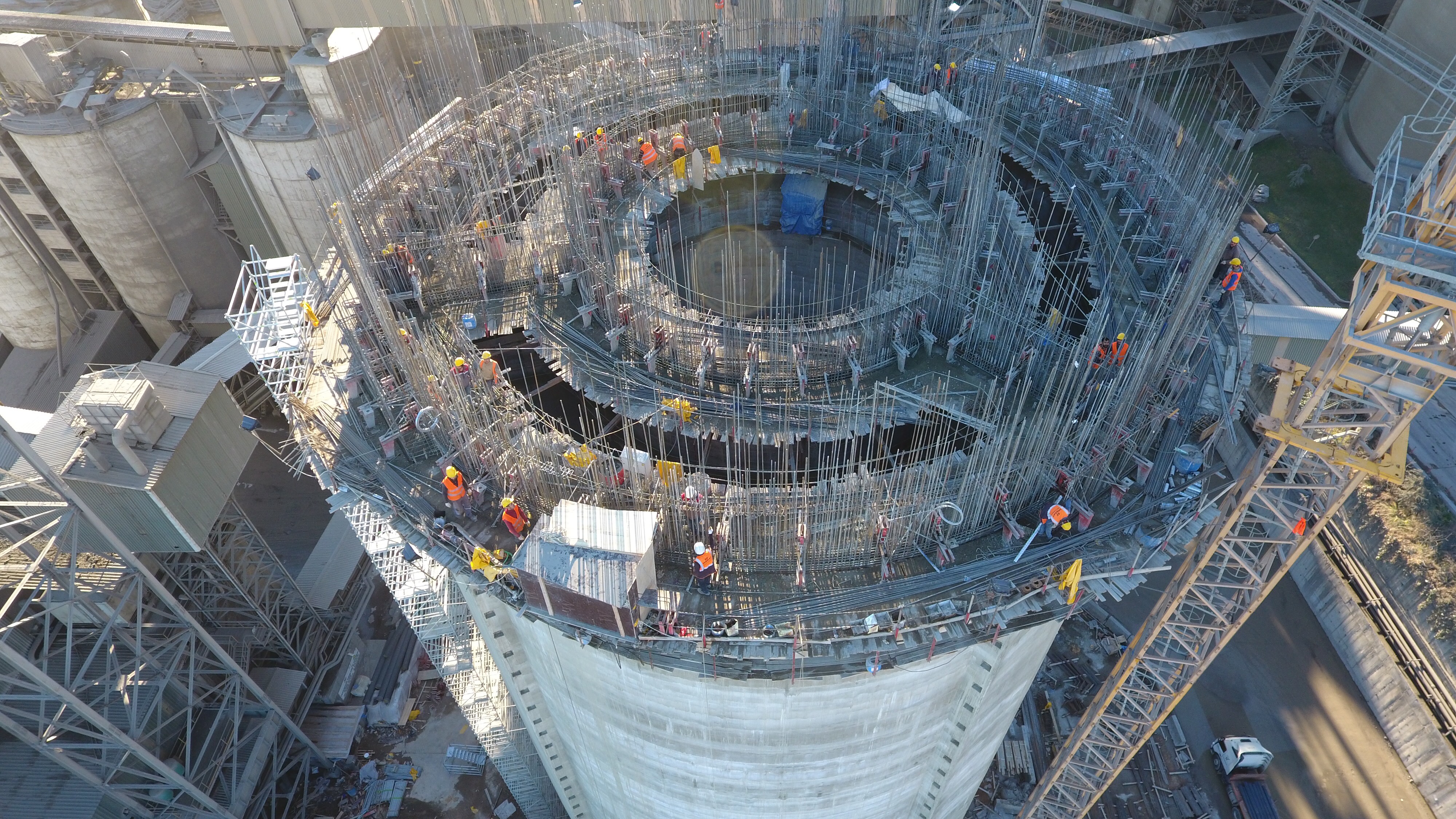 Construction of 1 cement silo using post-tensioning method within Nuh Cement Plant Project.