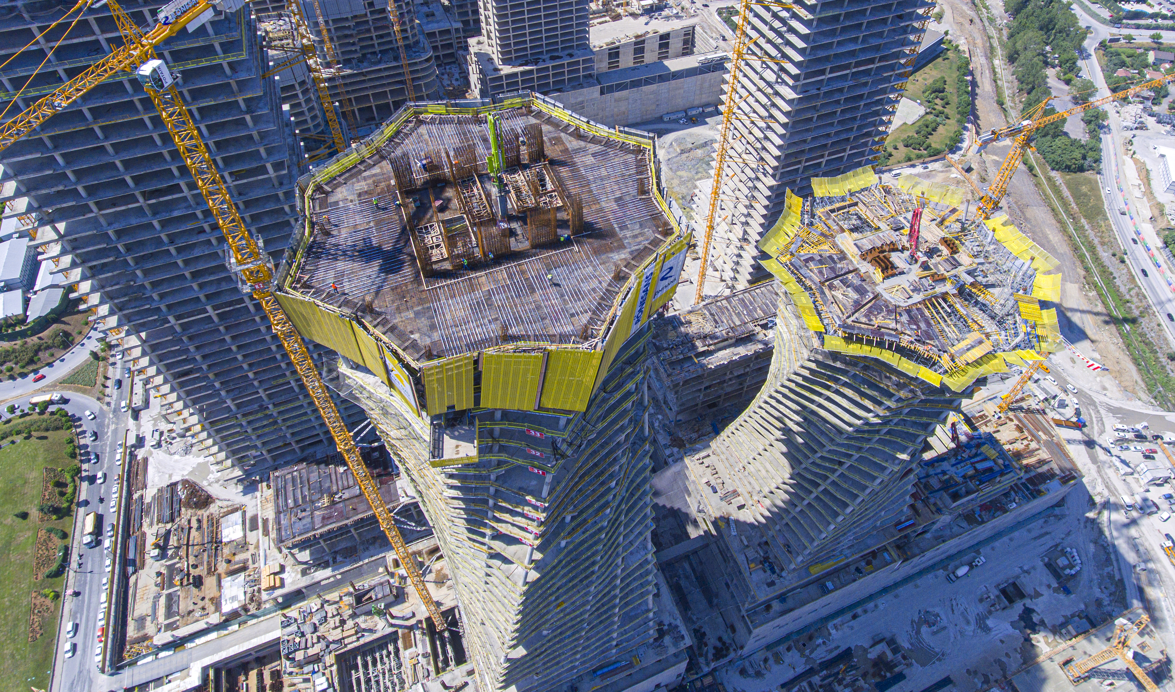 The Istanbul Finance Center project, of which the design, material supply and implementation works have been undertaken by Freysaş Freyssinet Yapı Sistemleri Sanayi A.Ş., comprises two high-rise towers, one having a height of 221 m with 52 floors and the other having a height of 151 m with 36 floors, both designed with a twisted geometry from the base floors upwards in the shape of a sixteen-pointed star intrinsic to the culture of “Anatolian Seljuk and Ottoman Architecture”, thus representing a perfect synthesis of the past and future.